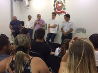 Cerca de 20 jovens, demitidos após o encerramento das atividades da Legião Mirim, foram recebidos pelo presidente da Câmara, Delegado Wilson Damasceno (PSDB), pelos vereadores José Luiz Queiroz (PSDB), João do Bar (PHS), Evandro Galete (Podemos) e pelo secretário de Assuntos Estratégicos da prefeitura, Ricardo Mustafá.