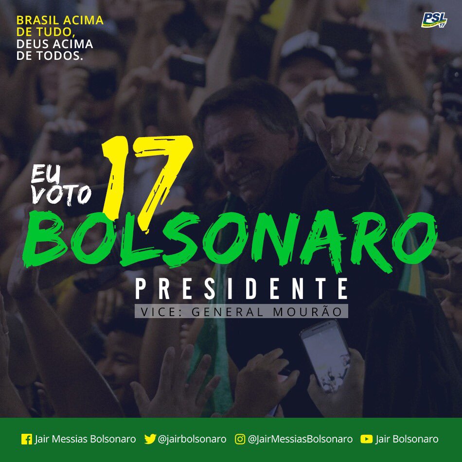 Sou Jair Messias Bolsonaro, Capitão do Exército Brasileiro e candidato à Presidência da República com o número 17. Um forte abraço!