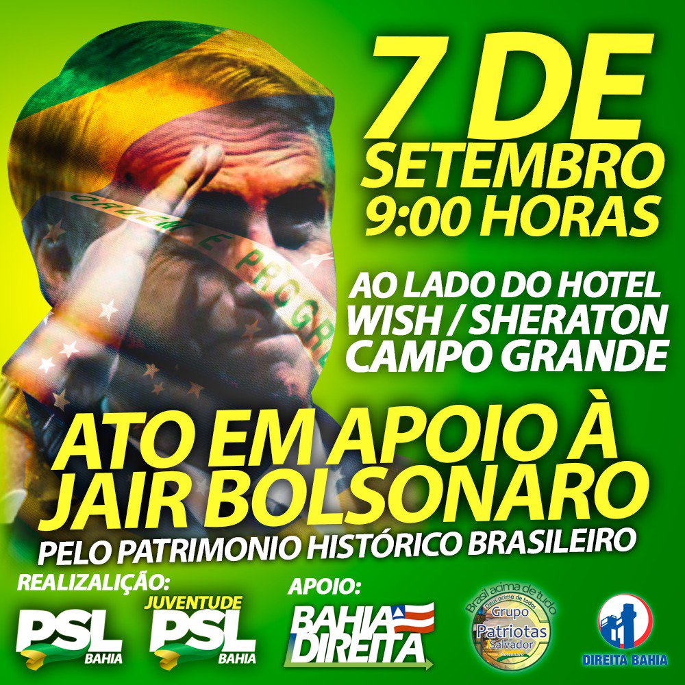 HOJE 7 DE SETEMBRO - ATO EM APOIO A JAIR BOLSONARO - AO LADO DO HOTEL WISH - SHERATON - CAMPO GRANDE